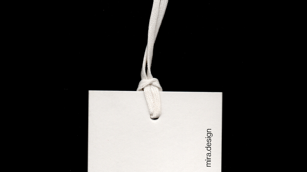 This mockup is styled with a crisp white tag and cotton string against a black background for maximum impact.