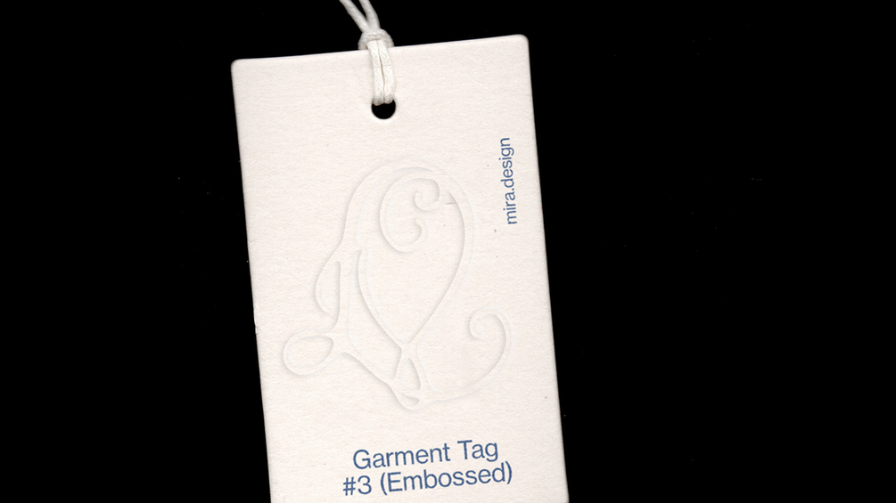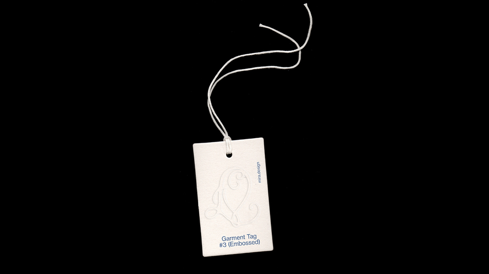 This mockup is styled with a crisp white tag and cotton string against a black background for maximum impact.